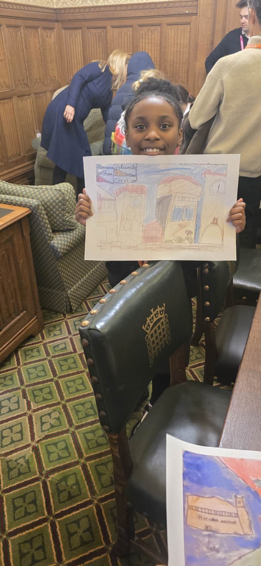 MP Ellie Reeves invited Children from Holy Trinity to create an artwork about Lewisham. Several winners were chosen and invited to visit her at the Houses of Parliament!